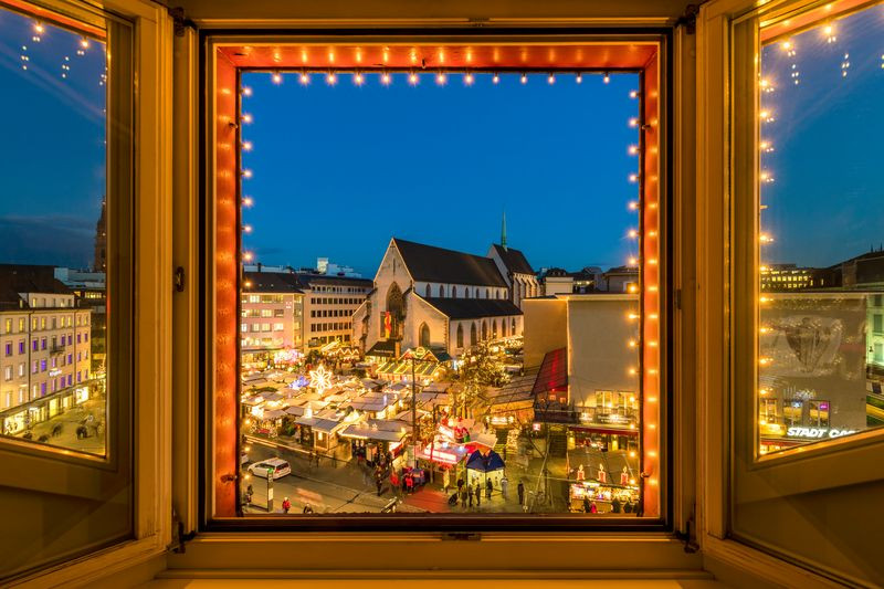 Ενώ απολαμβάνετε μια βραδινή βόλτα στα περίπτερα στην Münsterplatz, δεν πρέπει να παραλείψετε μια γρήγορη βόλτα στο Παλάτια. Εδώ μπορείτε να απολαύσετε το ζεστού κρασιού σας με εκπληκτική θέα στον Ρήνο και τα λαμπερά φώτα της πόλης.